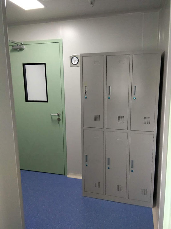 北京丰台医院PCR核酸检测实验室验收试剂准备间标本制备间更衣间PCR走廊高效送风口钢制门、闭门器、压差表指纹、密码专用门禁系统PCR实验台柜两门互锁标本与污物分开、上下双层传递窗紧急喷淋、缓冲间实验台柜、PCR实验台柜不锈钢洗手池更衣柜